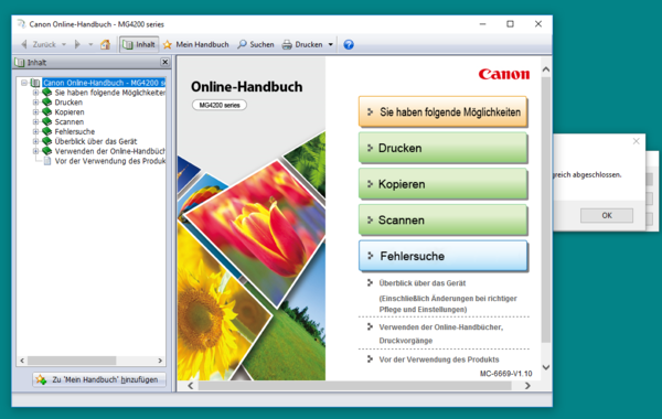 Am 7. Juni 2017 wollte ich nachschauen, ob und wie man Briefumschläge bei einem Canon MG 4200 Tintenstrahldrucker bedrucken kann. Auf der Website von Canon fand ich keine Hinweise. Also wollte ich mir das Handbuch downloaden. Für Windows gibt nur die Möglichkeit eine Zip-Datei.