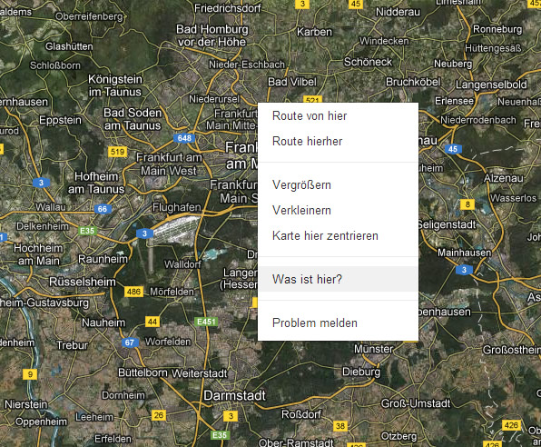 Wenn Sie die Koordinaten (Länge- und Breitengrad) eines Ortes in Google Maps wissen möchten, klicken Sie einfach mit der rechten Maustaste auf den Ort in der Karte und wählen Sie "Was ist hier?" aus.